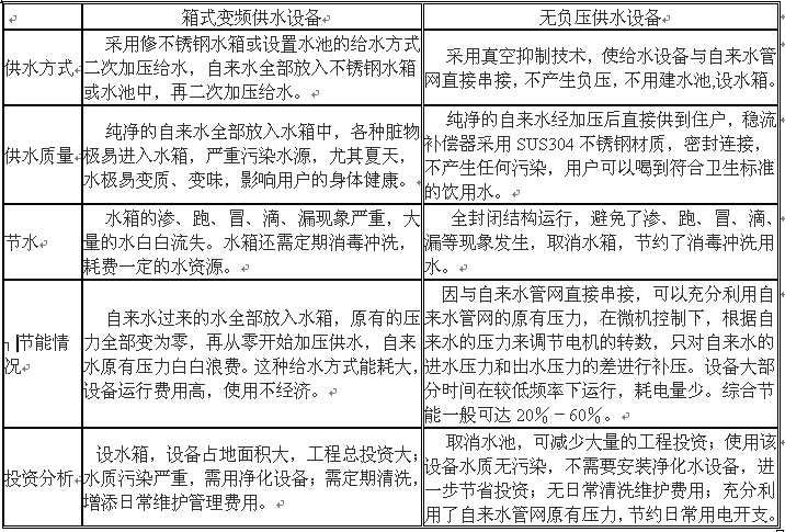 無負壓供水設備與箱式變頻供水設備優缺點對比